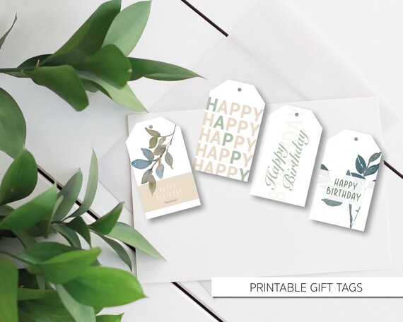 10 Printable Birthday Gift Tags Plant Set Birthday Gift Tags Gift Wrapper Gifts For Her For Him Gift Tags Set Happy Birthday Etsy